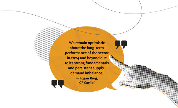 âThere will be very few development starts in 2024,â says King. âHowever, we remain optimistic about the long-term performance of the sector in 2024 and beyond due to its strong fundamentals and a persistent supply-demand imbalance.â