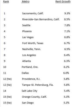 The average monthly rent is now $1,248 nationwide. On a regional basis, Sacramento, Calif., saw the highest rate of rent growth across all of 2016, at 9.3%, followed by Riverside–San Bernardino, Calif., at 8.5%. RealPage notes that the recovery of the apartment market in these two metros had trailed that of the rest of the nation. On the other hand, Dallas–Forth Worth’s strong economic growth paired a 6% to 7% rent-growth rate with 7% of the nation’s new apartment deliveries in 2016 and 9% of the nation’s current building activity.
