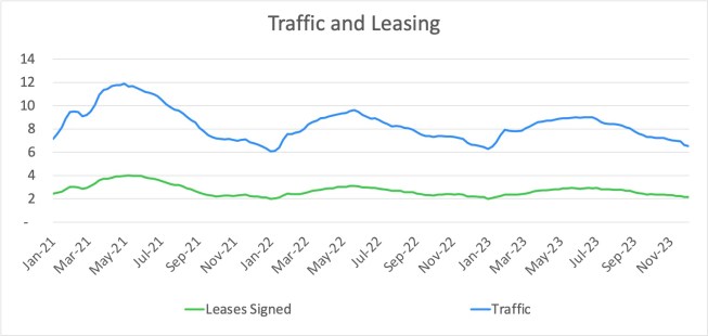 We knew the performance was going to be softer than 2021 and 2022, but we also had reason for optimism when occupancy remained stable for the first half of the year. The industry’s high point of 2023 came in the spring with a return to seasonality after the unsustainable rent growth of the previous two years. While we didn’t hit typical traffic numbers nationally, rents did pick up early in the year after a relatively weak winter season. The normal shape of seasonal trends was there across nearly all metrics, with one notable exception.