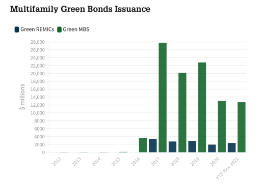 In addition to multifamily, the GSE introduced green MBS that is backed by newly constructed single-family residential homes with green building certifications that meet or exceed Energy Star 3.0 requirements. As of the end of November, it had issued 44 transactions pooling loans for single-family totaling $486 million.