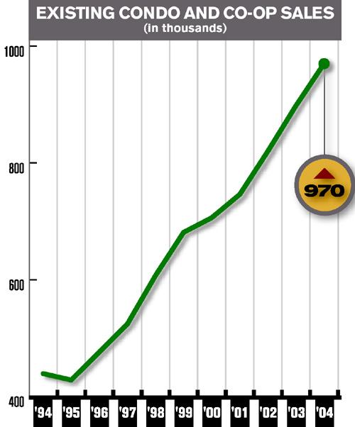 The American dream may be a house with a white picket fence, but an increasing number of buyers are choosing condos and co-ops instead. Last year, a record 970,000 existing condos and co-ops were sold, an 8 percent increase over 2003. Prices have jumped, too. In 2004’s last quarter, the median price for an existing condo was $203,200, which is $15,000 more than the median cost to buy a single-family home.