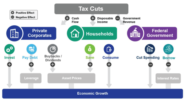 Moody’s expects the U.S. economy to grow by 2% to 2.5% in 2018 and 2019 but predicts that the existing tax cuts will add only one- to two-tenths of a percent of GDP to the nation’s aggregate economic growth. This growth will be driven by higher household consumption from individual tax cuts. Moody’s doesn’t foresee corporate tax cuts making a meaningful impact on business investment spending.
