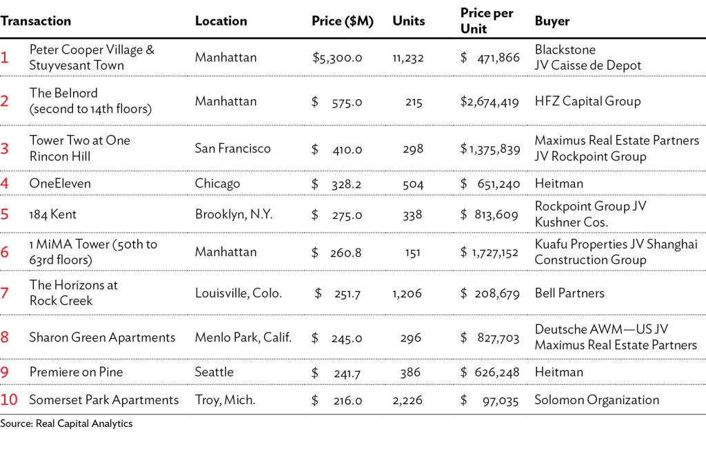 Stuyvesant Town and Peter Cooper Village led the way last year.