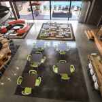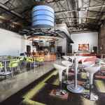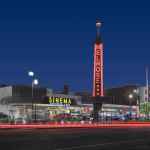 Inside the original building, the Sinema restaurant preserves the “Old Hollywood” feel, leaving mirrors on the walls and ceiling as they were found during renovation. The existing balcony—with stepped concrete for audience seating on the second floor of the theater—was partially removed, but in its place The Melrose Partners created a cocktail lounge and private dining space. The developers did remove the wooded storefronts of the other retail shops, in order to meet current energy standards.
