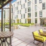 Wood Partners is currently seeking LEED Gold certification for the project, with features such as smart drip irrigation, a green roof to manage stormwater runoff, low-flow plumbing fixtures, and reduced lighting where possible. The developer also sourced materials sustainably, with nearly 30% of the project’s total material cost coming from recycled items and nearly 15% coming from materials sourced from within 500 miles of the project.