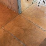 As the concrete stiffened, workers stamped slate textures into the surface and then troweled approximately 50% of the impression flat to provide a unique appearance. This technique helped make the floor easy to clean and maintain. Water-based acrylic color highlighting improved the overall appearance. Afterward, 4×8-foot 1/8-inch-thick mat board sheets were placed over the work and taped together to prevent damage from other trades.