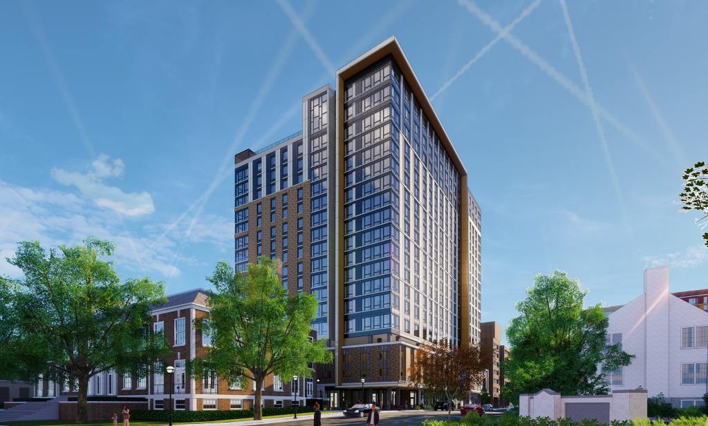 Adjacent to the Michigan Theater, the 19-story high rise and mid-rise buildings will include 521 beds across 253 apartments ranging in size from studios to five-bedrooms. Nineteen affordable apartments in the high-rise will be made available to qualifying households.