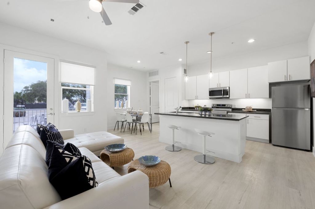 With 106 units, the garden-style community offers a mix of one- to three-bedroom apartments ranging in size from 555 to 1,307 square feet. The units will include 10-foot ceilings, wood-look floors, in-unit laundry, island kitchens with granite countertops, backsplashes, and more.