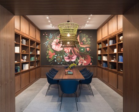 Creating that feeling of home is exactly the point, Dayton notes, an idea that extends from art to other finishes and furnishings, too. “We’re using nice fabrics. We’re using lovely furniture. We’re using things that we put in our clients’ homes because we see the extension of the lobby and the common area spaces and lounges as part of their home,” she says.