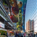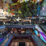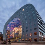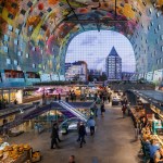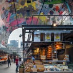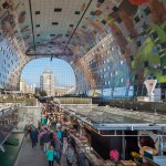 Architecture firm MVRDV experimented with a fresh approach to mixed-use development for the Markthal in Rotterdam, Netherlands, with an upside-down ‘U’ shape that wraps residences around an indoor market corridor.
