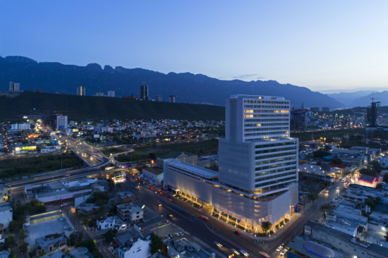 Above the commercial base, Citica offers 90 residential units and 164,000 square feet of office space in two distinct rectangular towers. Residential amenities include a rooftop deck and a swimming pool, and all apartments feature horizontal ribbon windows that provide views of Monterrey and the Sierra Madre Oriental mountain range.