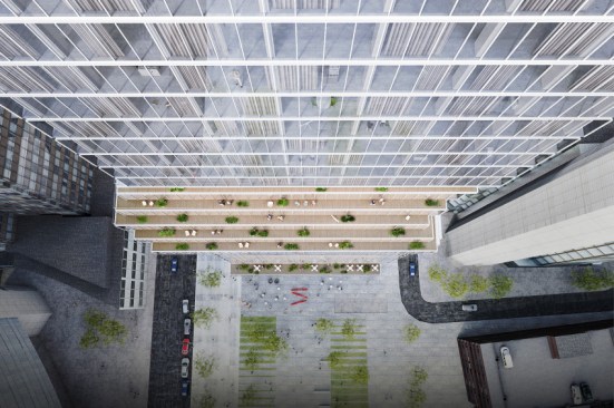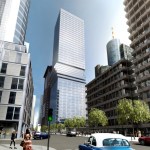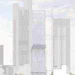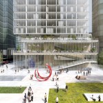 The almost-700,000-square-foot structure, which will house public areas, office space, and residential units, makes a striking impression on the streetscape by visually defining its three different uses via shifting floor plates. These shifts designate the changes in use and are oriented to capture the best views and space for each section’s specific function.