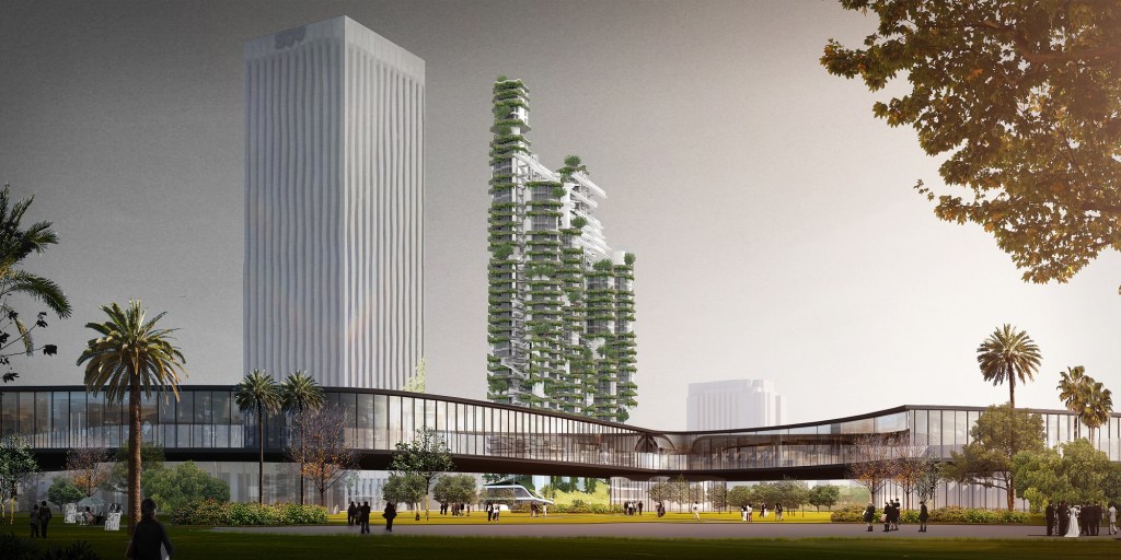 With the proposed site situated above a forthcoming transit station, Cloud Corridor’s sculpted podium, which is covered with vegetation and resembles “rolling hills,” will serve as a public park and incorporate natural elements into one of the city’s transportation hubs.