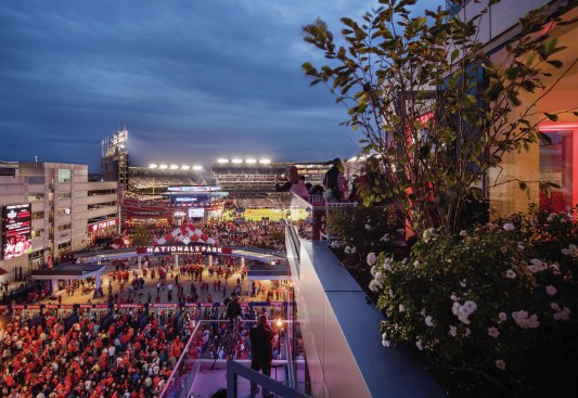 The building directly overlooks the field, as well as the busy thoroughfare between the Navy Yard metro station and the main ticket gate. Given this exposure, which would be broadcast to over 50 million people throughout the Major League Baseball season, an iconic silhouette was a priority for the ODA New York design team.