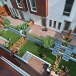Located on three contiguous lots (a rarity in this densely populated city), the residences are oriented back-to-back so that they front two different streets. This site-planning solution promotes safety by casting more eyes on the street and eliminating dark back alleys. It also allowed the creation of a private courtyard garden in the spine between buildings. This, combined with upper-story decks on the street sides of the buildings, mean not just one, but two outdoor living spaces per unit.