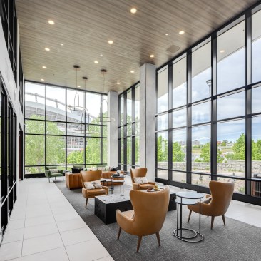 With views of downtown Denver and the mountains, residents can enjoy the Star Lounge rooftop deck, 12th floor clubroom; outdoor pool and spa with towel service; game lounge; multisport simulator; multilevel fitness center; dog wash station; and bike and ski storage. The Study, a work-from-home space with offices and conference rooms, was integrated into the project after the start of construction to address the need for flexible working space.