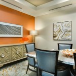 The community’s neutral color palette includes bright color accents and varied patterns to cater to a range of resident style preferences, whether they favor understated elegance or abstract designs.