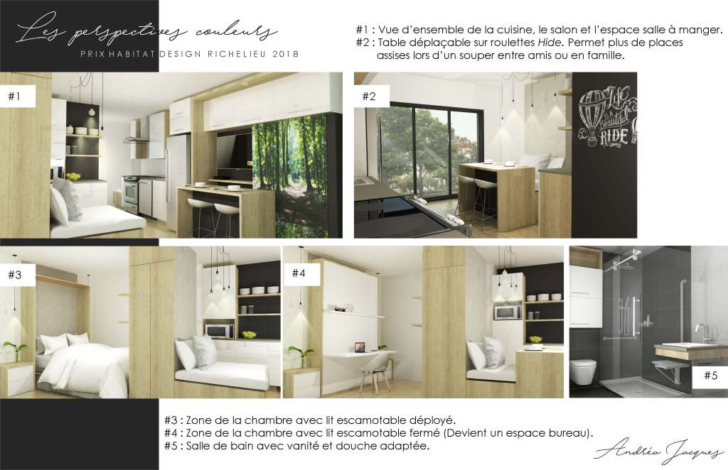 Two universal apartment designs were recently recognized in the Richelieu Awards for New Designers in Montreal, Canada. The contest challenges young professionals to create a versatile living space in a 450-square-foot micro-condo that meets universal design accessibility standards for people with reduced mobility.