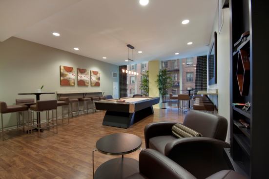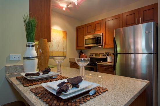 Stainless steel appliances, cherry cabinets, cultured marble bathroom counters, and generous closets are just a few of the touches that up the complex’s luxury quotient. Other conveniences at this pet-friendly property include a dog run, an attached enclosed parking garage, on-site Zipcar access, and bicycle storage.