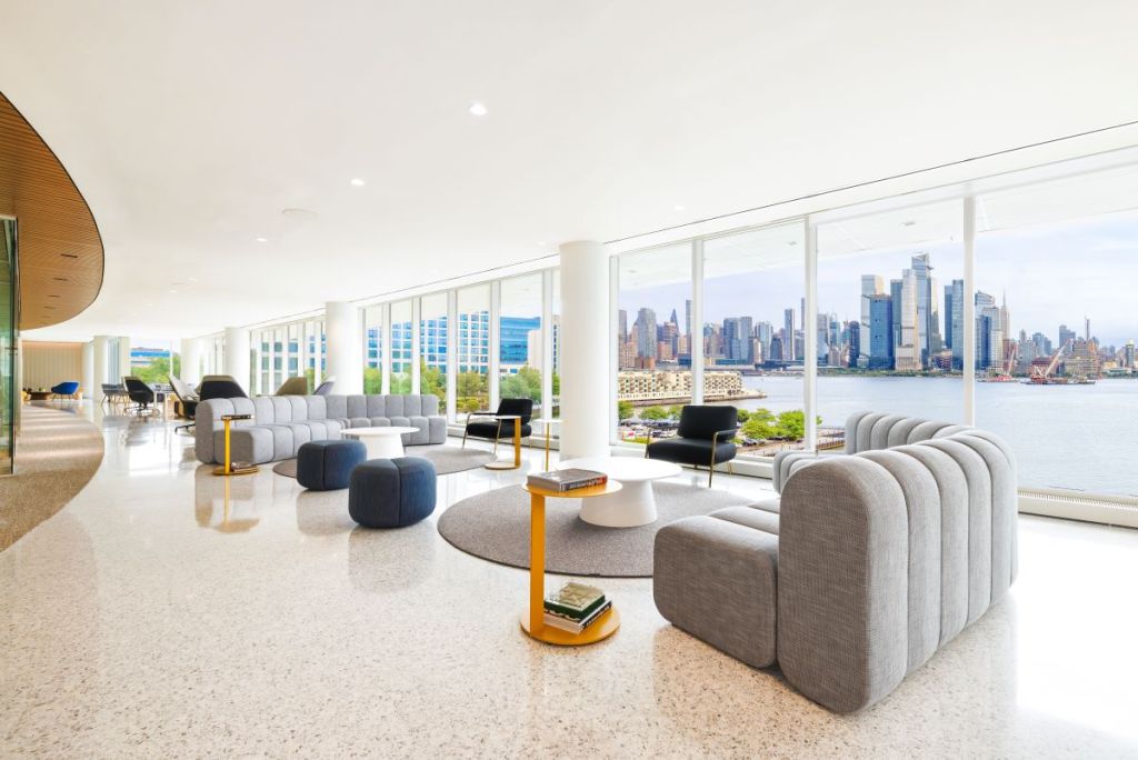 Designed for the “hybrid” renter, the development’s expansive 5,200-square-foot co-working space, the Work Lab, offers residents convenience while being just a ferry ride away from Manhattan’s office- and cultural-centric Hudson Yards. At opening, the community is 50% leased and managed by Greystar.