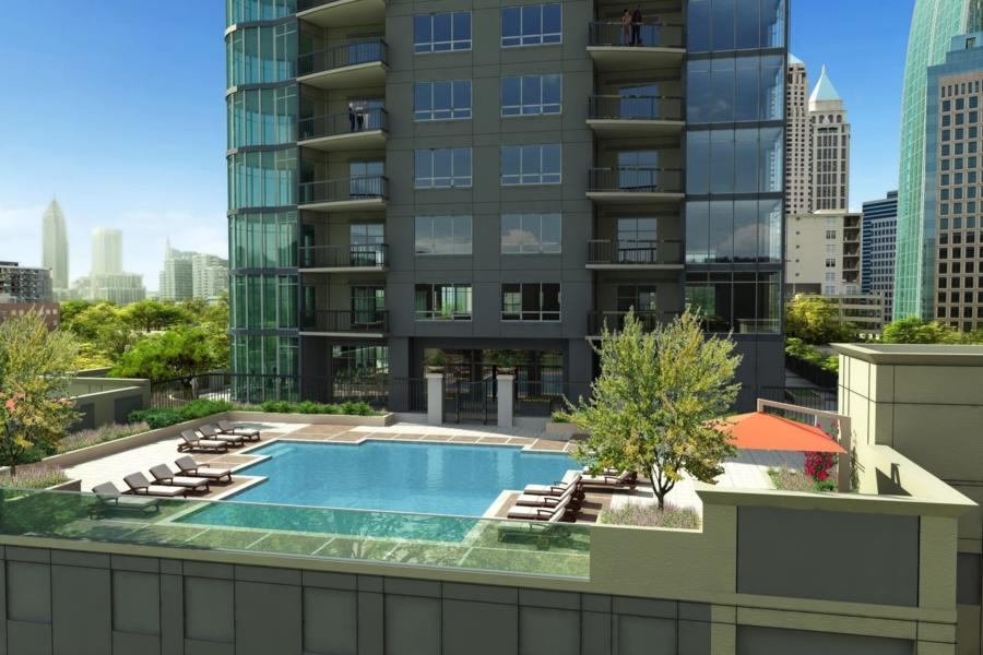 “We really had the opportunity to give the residents a great view of the park,” says architect Jeff Smith of Atlanta-based Niles Bolton Associates. “If you are standing in the living room, you have 210 degrees of view starting directly to the east to Piedmont Park and sweeping to Midtown Atlanta.”