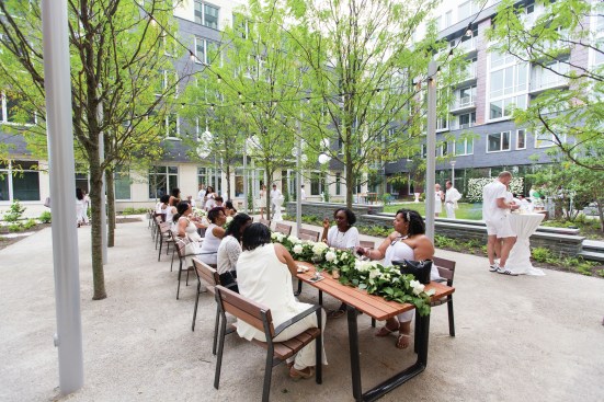 The Pearl received a two-star Fitwel rating from the standard’s operator, the Center for Active Design, by incorporating approximately 50 unique research-based design and policy strategies that support the physical, mental, and social health of its residents. The community’s smoke-free outdoor spaces include abundant open and green areas that encourage residents to remain active, unwind, and connect with one another, such as a courtyard with restorative gardens, a playground, fitness equipment, and an urban farm.