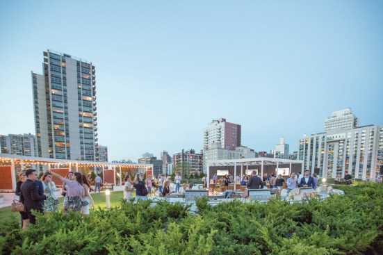 The Sinclair’s roof deck contains several amenities for entertaining guests, such as lounge seating, cabanas, a fire pit, outdoor grilling kitchens with private dining areas, a bar area, televisions, gardens, and an 850-square-foot dog run. Residents can also make use of the outdoor pool and spa on the sun terrace.