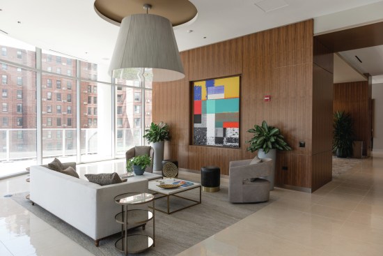 The building’s 390 studio, one-, two-, and three-bedroom residences and four-bedroom penthouses lease for $1,900 to $13,870 and range in size from 500 to 2,600 square feet.