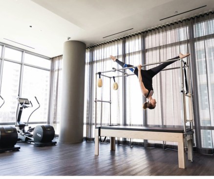 Inside, a high-end fitness room is outfitted with Pilates equipment and separate yoga and private physical therapy studios. Additional amenities include a surround-sound screening room, resident lounge with chef’s demonstration kitchen, business center and conference room, dog spa, Starbucks coffee bar, 24-hour concierge, and secure-access garage.