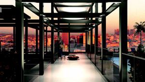 Renderings of the ultra-sleek rooftop space, called 23, grab just about every buyer. The previous developer had planned to build a catering kitchen and meeting rooms on the top floor and had already erected some of the necessary walls. The views from this space were “amazing,” says Gehman, “but there was all this stuff blocking the view. So we reshuffled things, took away the walls and left the steel girders, adding a little steel ourselves down the spine of the roof. Now it looks like an archeological discovery of a Greek ruin.” There’s even a huge fire cauldron and a swimming pool, fashioned out of stainless steel and put in place via helicopter. On a clear day, the views stretch to include the ocean, Catalina Island, the Hollywood sign, and the observatory.