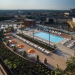Residential levels, boasting private balconies, are raised above the podium to provide views for tenants extending past the entertainment and sports district. Carved out areas on the 8th and 26th floors provide space for high-end tenant amenities including a pool deck, fitness area, gourmet kitchen, outdoor grilling area, and screening room.
