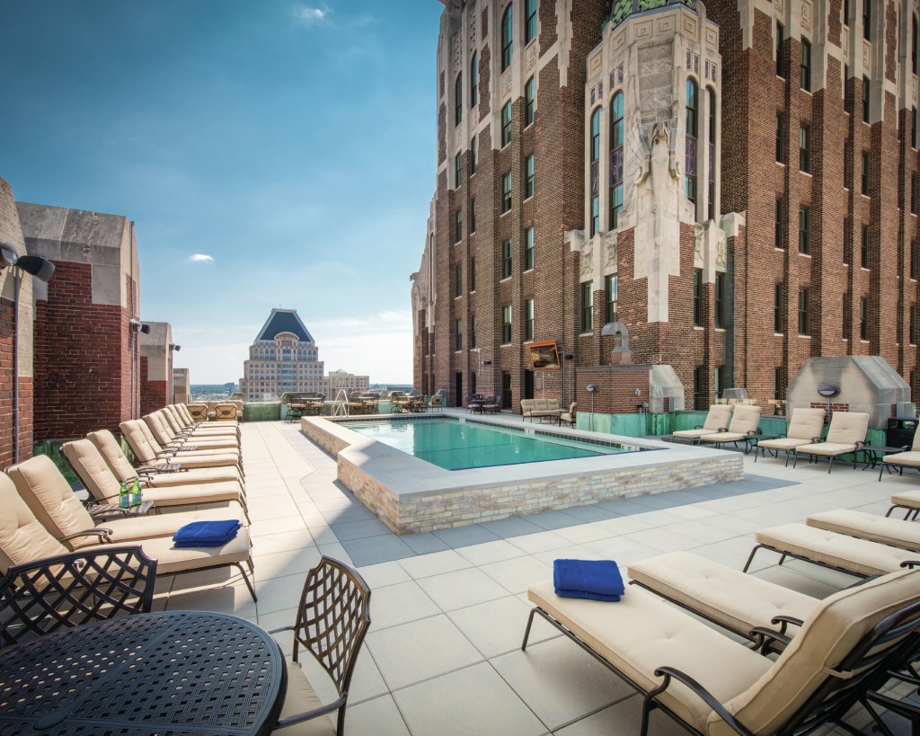In modern-day Baltimore, a rooftop pool perched above the city harkens back to the 1920s.