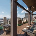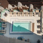 The rooftop pool, which is open May 1 to Sept. 30, also features a 90-inch television with complete surround sound; lounges; dining areas; and an outdoor cinema with piped-in music for movie nights and community events. The pool is considered the highest residential pool in the state.