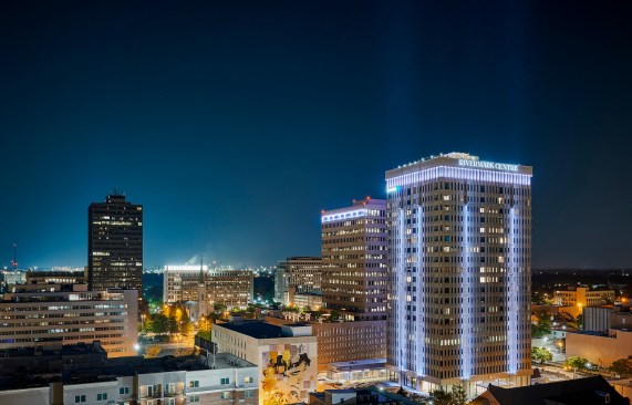 The Residences at Rivermark is bringing new vitality to downtown Baton Rouge, Louisiana. The 21-story Brutalist office tower, which is recognized as a local architectural icon, has been transformed to provide luxury apartments for a diverse group of residents: young professionals and families, empty nesters, and retirees.