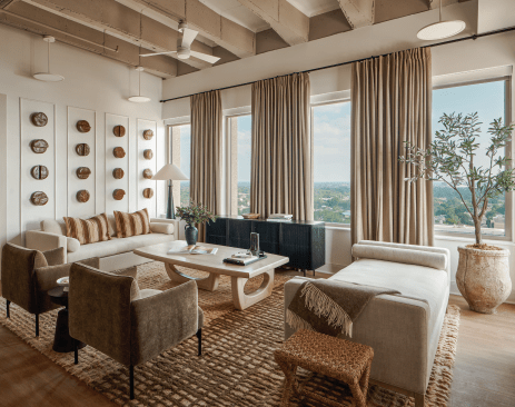 “Baton Rouge is a city that didn’t experience a large high-rise residential building boom that many major markets did. This old building downtown, which has fantastic views, seemed like a good candidate, and we were able to make the numbers work,” says Brooks Howell, a principal at Gensler. “Since we couldn’t build new, it turned out to be cheaper by leveraging [state] historic tax credits, etc., to take this existing building and convert it. Otherwise, there still wouldn’t be any high-rise housing in downtown Baton Rouge right now.”