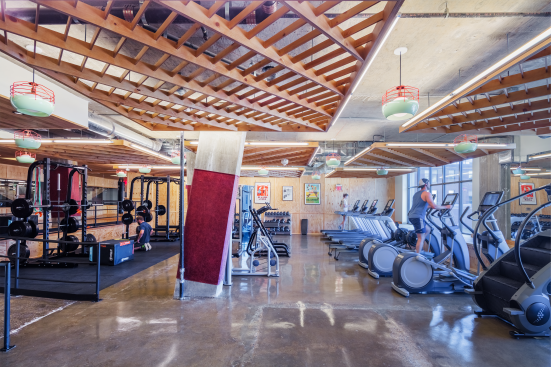 A Whole Foods store anchors The Apollo’s retail component, providing a grocery within walking distance for residents and locals. WeWork, a coworking and office space, is located around the corner. Between these anchors are a series of small storefronts occupied by local businesses, including the aforementioned Wydown Café, a vegan restaurant, a bike shop, a local bookstore, and an alley bar still under construction.