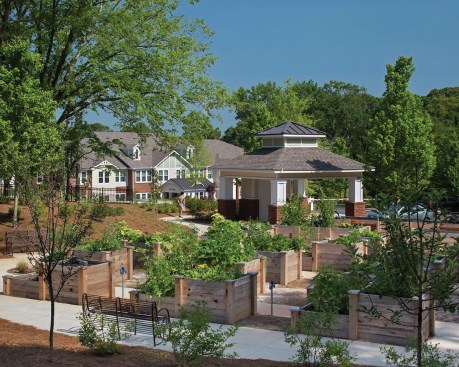 The developer also felt it important to design the exterior so that it would fit into its single-family home neighborhood, which the firm accomplished with a meandering two-story building with brick accents and picturesque pitched roofs. Sustainability was another driver, with the project’s transit-friendly location, walkable streets, gardens, park, storm-water management, and energy-efficient appliances. These choices and others helped Columbia Senior Residences earn EarthCraft multifamily certification.