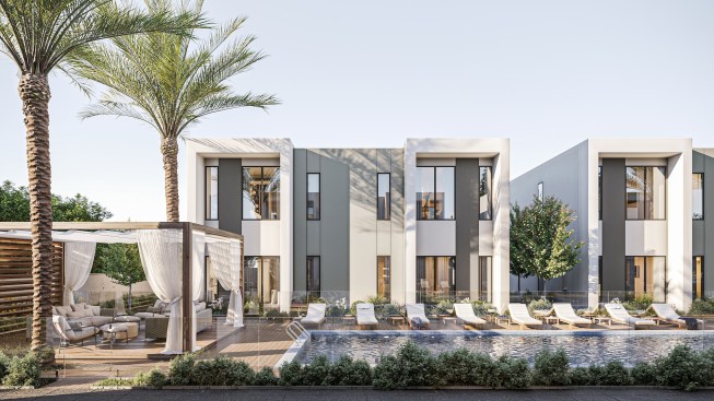 Comprised of eight duplexes, the community’s 16 units are broken up into one- and two-bedroom unit options, which range in rental prices from $2,500 to $3,500. The one-bed, one-bath floor plan encompasses 705 square feet, plus a private yard with a pet door, while the two-bed, two-bath plan includes 1,318 square feet, plus a private yard as well.