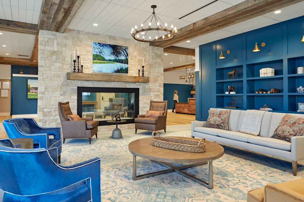 Reflecting the area’s history and landscape, Waterstone on High Ridge has a contemporary New England farmhouse theme with a warm wood lobby, stone fireplaces, a library, and eight dining venues.