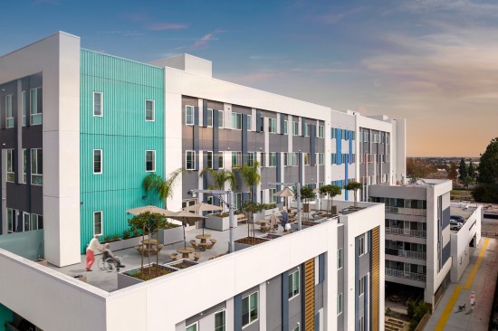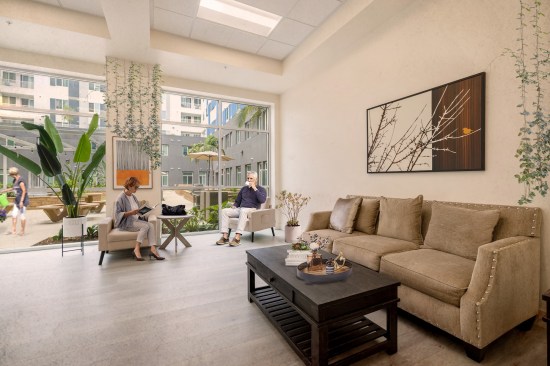 AO, a full-service architecture firm, and developer AMG & Associates utilized the existing structural steel frames and added a new wing to create Garden Brook Senior Village. Located in the city’s Koreatown neighborhood, the development offers studio, one-, and two-bedroom apartments with modern kitchens, full-size bathrooms, and open floor plans.