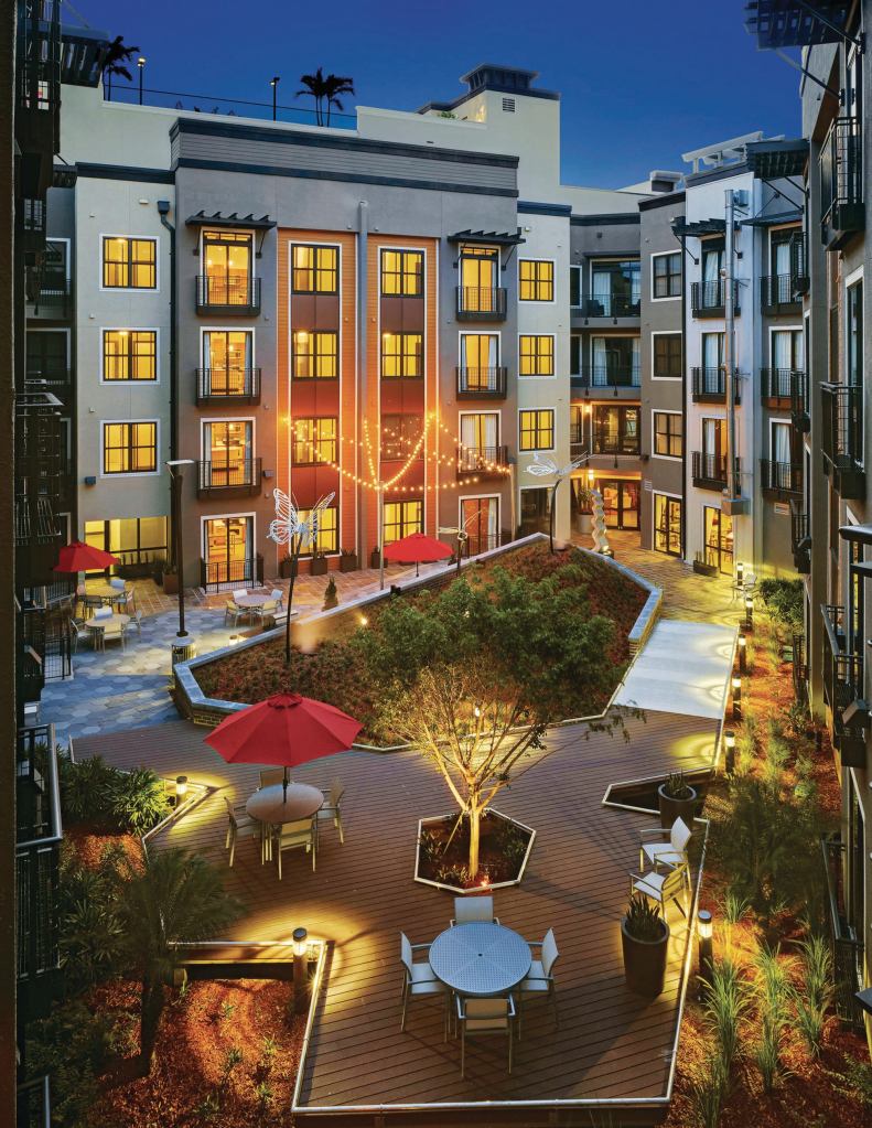 Developed by Cleveland-based Zaremba Residential Group and designed by Humphreys & Partners Architects, Fusion 1560 has a name that reflects its eclectic mix of façades, amenities, and green spaces, all of which are “fused” together cohesively. The apartment complex adjacent to downtown St. Petersburg, Fla., targets young urban professionals and presents a blend of different elements that create a highly attractive whole.
