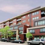 When the project opened in the fall of 2016, it had expansive windows and porches facing the park; wider sidewalks and generous canopies around the residential and retail entrances to encourage people to stop and gather on the library side; and retail spaces that wrap around the building, drawing pedestrians from the east and mirroring businesses across the street, on the commercial-corridor side.
