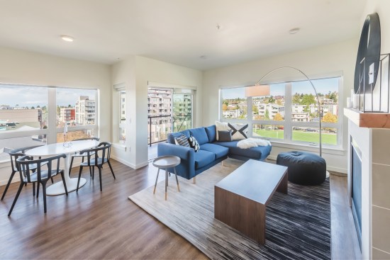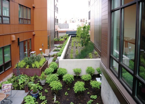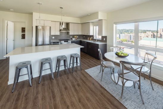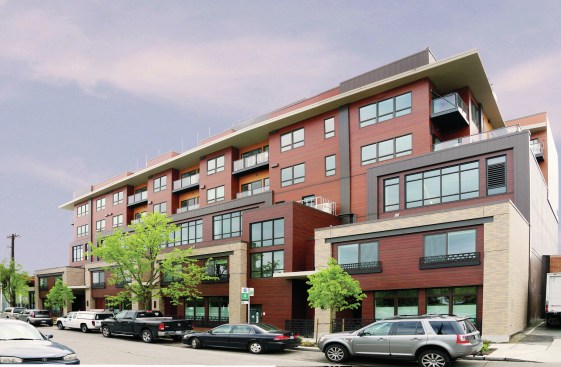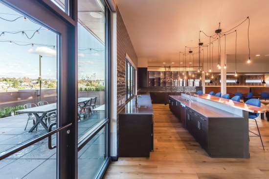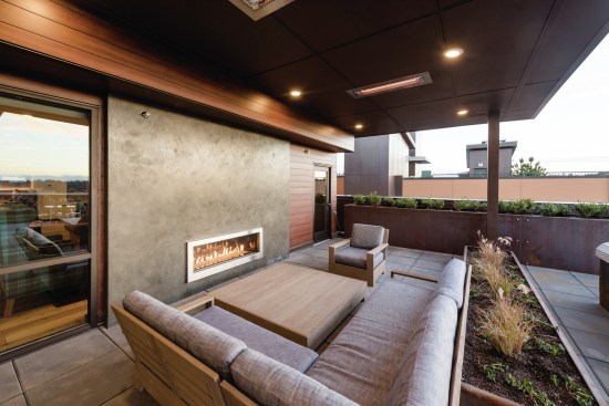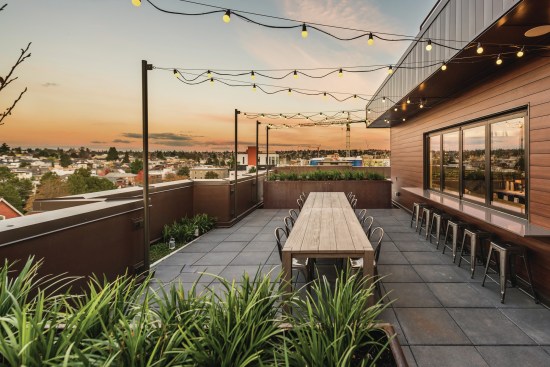 And, of course, The Commons at Ballard has plenty of green amenities. To reduce the demand on utility-provided electricity, photovoltaic panels were installed to cover 3.4% of the yearly electrical costs. Also, more than a quarter of the site was restored with vegetation and landscaped terraces featuring drought-resistant plants, and a 20,000-gallon rainwater-collection-and-reuse system was installed to meet 100% of the building’s irrigation needs.