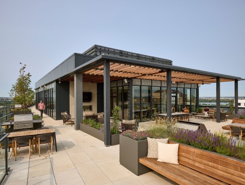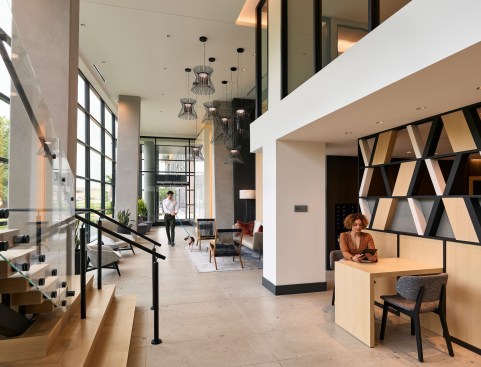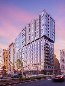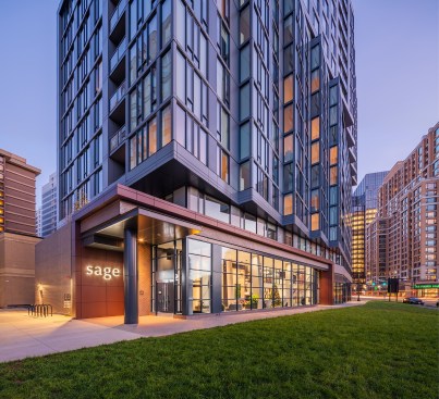 The design and development of Sage, a high-rise apartment building in Arlington, Virginia, was impacted significantly by the announcement of the city as the site of Amazon’s HQ2. SK+I Architecture says the building was initially intended to compete in the young professional market in Crystal City and Northern Virginia with larger units while being cost effective with interior finishes.