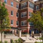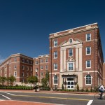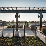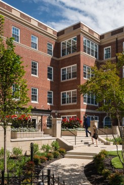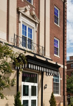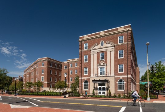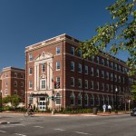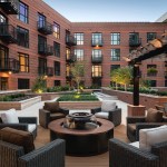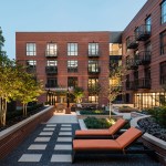 While the street-facing façade had to meet historic preservation standards, the design team, including Reston, Va.-based Architecture, Inc., was able to create a more contemporary plaza and balcony overlook facing the back. The plaza sits over two levels of new below-grade parking and features a pergola, a fire pit, and lounge seating for resident use.