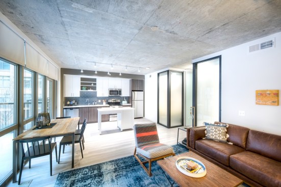 AVA NoMa, recognized in this year’s MFE Awards program with a high-rise design merit award as well as for its unit design, is located in Washington, D.C.’s, up-and-coming NoMa district, which is known for its industrial past. As a result, developer AvalonBay, architecture firm KTGY, and interior designer Degen & Degen paid homage to some standard industrial warehouse features in both the building’s individual units and its common areas, with concrete columns and ceilings, exposed ductwork, and chalkboard walls.