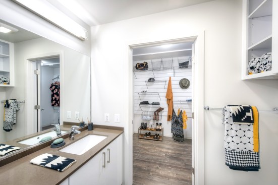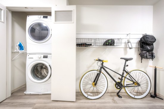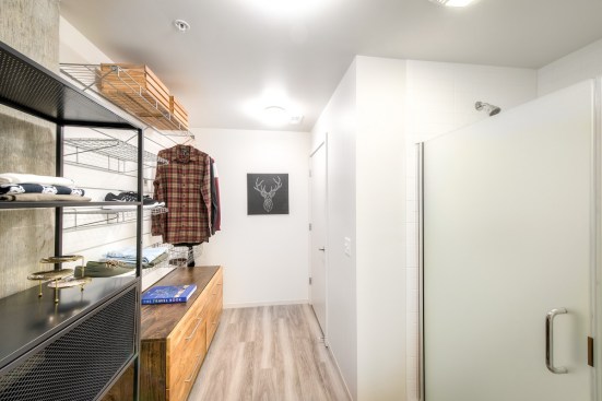 Large walk-in closets are combined with the showers to maximize space, but residents also have the option of customizing their closets to their own liking. Additionally, the apartments feature in-unit, full-sized washers and dryers.