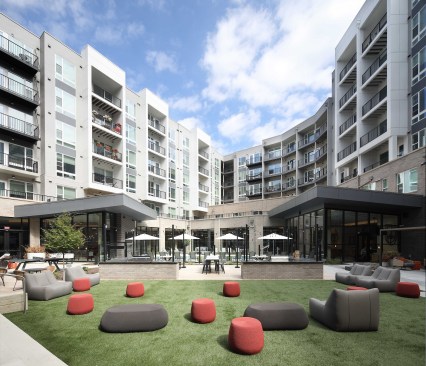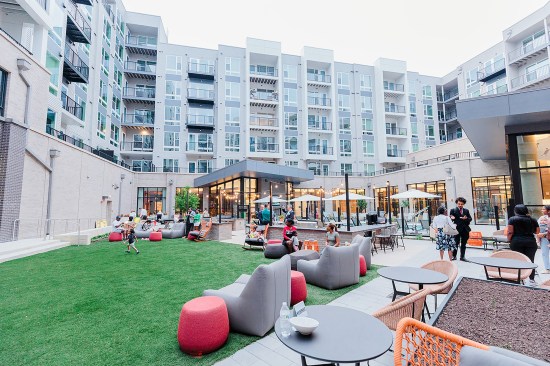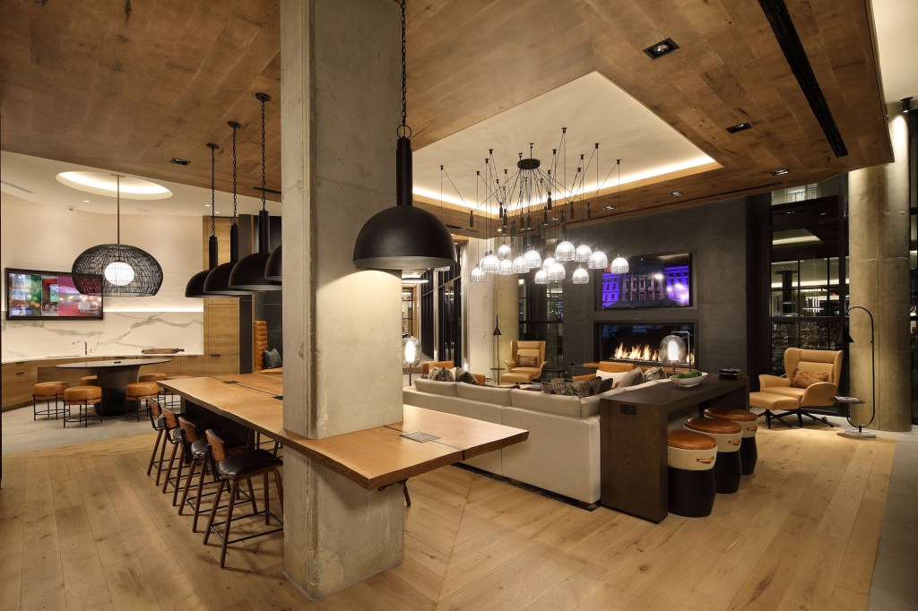 The team worked to create an inviting building where the amenity spaces wrap around a courtyard to enjoy views of the pool and outdoor areas. The building also includes 23,000 square feet of ground-floor retail space that’s anchored by a CVS store.