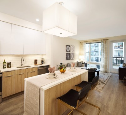 Of the property’s 268 units, 25% serve residents earning up to 50% of the area median income (AMI), 5% serve residents earning up to 65% of the AMI, and the remainder are market-rate apartments, with all the homes having the same high-quality features and finishes.