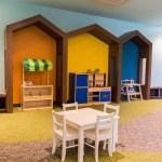 Clad in warm grey metal panels and two shades of red brick, the modern design of the building meshes well with the community’s traditional architecture. In addition, The Lindley has been built around the new Jean Banks Park with a granite slide and water features, open to the residents and surrounding community, atop a below-grade garage.